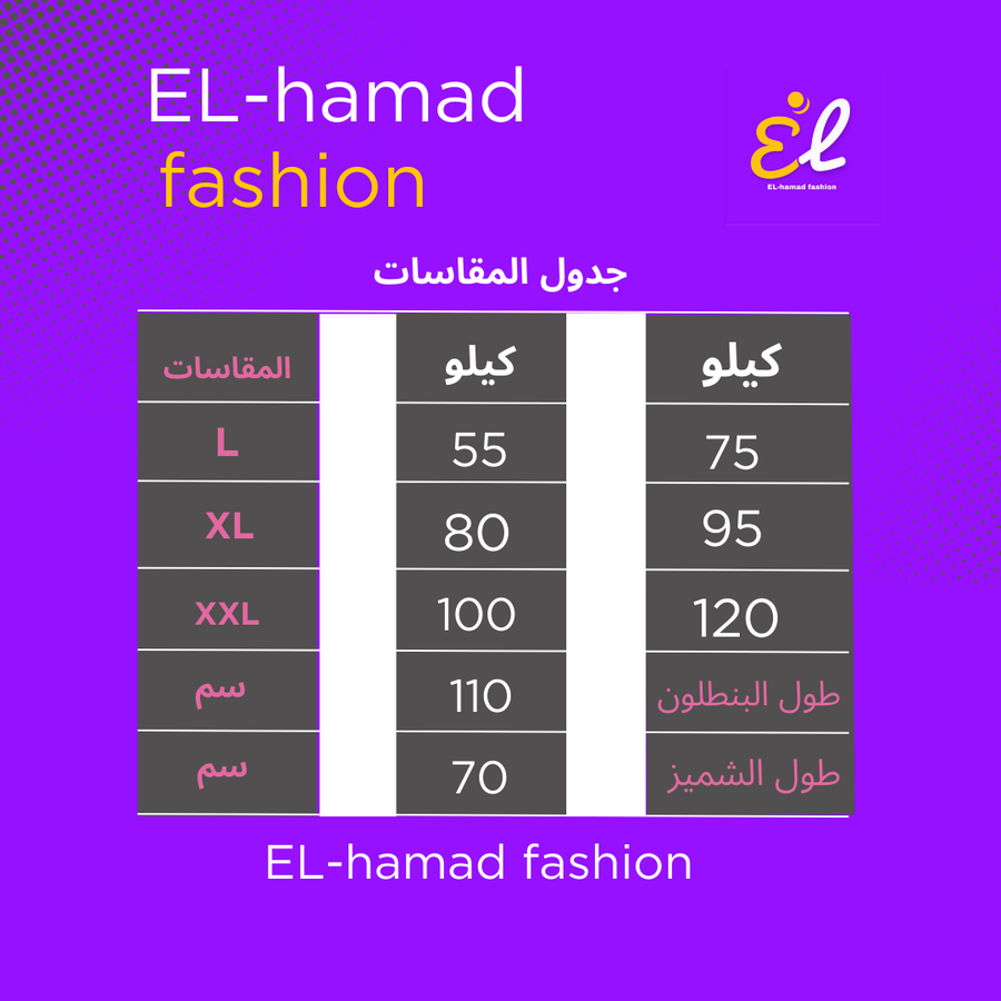 المقاسات: L - XL - XXL (بيلبس لحد 120 كيلو)